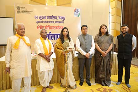 उदयपुर। भारत सरकार के सूचना और प्रसारण मंत्रालय के पत्र सूचना कार्यालय, जयपुर की ओर से आज उदयपुर में क्षेत्रीय मीडिया कार्यशाला “वार्तालाप” का आयोजन किया गया। इस अवसर पर मीडिया कार्यशाला एवं केन्द्रीय संचार ब्यूरो, द्वारा केंद्र सरकार की 11 वर्ष की उपलब्धियों पर लगाई गई प्रदर्शनी का उद्घाटन श्री बाबुलाल खराडी, मंत्री, जनजातीय क्षेत्रीय विकास विभाग, राजस्थान सरकार तथा श्री ताराचंद जैन, विधायक, उदयपुर शहर ने किया। इस एक दिवसीय कार्यशाला में उदयपुर शहर तथा जिले के ग्रामीण क्षेत्रों में कार्यरत 100 से अधिक प्रिन्ट एवं इलेक्ट्रॉनिक मीडियाकर्मियों ने भाग लिया।