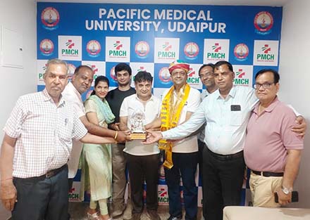 उदयपुर। अग्रवाल समाज उदयपुर की ओर से पेसिफिक मेडिकल विश्वविद्यालय के चेयरपर्सन,समाजसेवी एवं बिजनेस टायकून राहुल अग्रवाल को ’अग्र रत्न सम्मान’ से सम्मानित किया गया। यह सम्मान उन्हें समाज के उत्थान, शिक्षा और स्वास्थ्य सेवाओं के क्षेत्र में दिए गए उनके उल्लेखनीय योगदान के लिए प्रदान किया गया। सम्मान समारोह में राहुल अग्रवाल को जयन्ति महोत्सव समिति की ओर से वैष्णव समाज अध्यक्ष संजय अग्रवाल, लष्करी समाज अध्यक्ष दिनेष अग्रवाल, अग्रवाल समाज अध्यक्ष अशोक अग्रवाल एवं ललित अग्रवाल ने संयुक्त रूप से सम्मानित किया। इस अवसर पर पीएमसीएच की चेयरमेन प्रीति अग्रवाल, अमन अग्रवाल एवं राजकुमार अग्रवाल सहित समाज के अनेक गणमान्य अग्रबन्धु उपस्थित रहे।