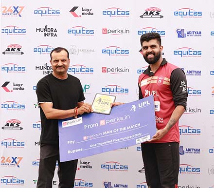 निशांत कच्छावा के शानदार शतक की बदौलत निर्धारित 20 ओवर में 193 रन बनाएं। जवाब में बल्लेबाजी करने उतरी बागोर रॉयल्स की टीम निर्धारित ओवरों में 174 रन ही बना सकी। इसके चलते यह मैच हल्दीघाटी योद्धाज ने जीत लिया। मैन ऑफ द मैच निशांत कच्छावा को मुख्य अतिथि स्टेट पैनल अंपायर लोकेश सोलंकी ने पुरस्कार दिया।