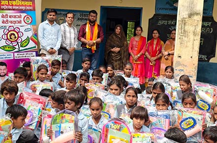 श्री एकलिंगनाथ राष्ट्रीय सेवा संगठन के संस्थापक अध्यक्ष आकाश बागडी ने बताया बुधवार को राजकीय उच्च प्राथमिक विद्यालय भील बस्ती ईण्टाली, तहसील मावली के 101 बच्चों को शैक्षिक किट वितरित किए गए। इसी के साथ स्कूल की दो बच्चियों रीना भील पुत्री केशू लाल तथा दीपिका पुत्री मोहन लाल को संगठन की ओर से गोद लिया गया। अब इन बच्चियों के शैक्षिक खर्च लेकर अन्य सहयोग संगठन की ओर से किया जाएगा। श्री बागडी ने बताया कि इन दो बच्चियों को मिलाकर संगठन अब तक 17 बच्चियों को गोद ले चुका है। इस अवसर पर कार्यक्रम में इंटाली सरपंच श्रीमती अन्नूभरत मेनारिया, प्रधानापक डॉ. ओम प्रकाश किराड, स्टाफ शिक्षक श्रीमती सोनू कुमारी, कमल कुमार गुर्जर, प्रीतम सिह मीना, श्रीमती लता गौड, श्रीमती रेखा माली आदि भी उपस्थित थे। सरपंच ने भी इस पहल की सराहना करते हुए कहा कि ग्रामीण क्षेत्र के बच्चों को भामाशाह का सहयोग मिले तो ये भी आगे बढ सकते हैं। संस्थापक अध्यक्ष आकाश बागडी ने कहा कि संगठन की ओर से इस तरह के सेवा कार्य लगातार चलाए जा रहे हैं। जहां भी उनको सूचना मिलती है, वहां शैक्षिक किट वितरित किए जाते हैं। संगठन की ओर से नारी वैभव मुहिम के तीसरे बैच के पंजीयन चल रहे हैं और इसका शुभारंभ 15 अक्टूबर से हो जाएगा। यह प्रशिक्षण संस्थान के नए भवन बोहरा गणेश जी के समीप प्रतापनगर मार्ग पर होगा। श्री बागडी ने बताया कि तीसरे बैच में सिलाई, ब्यूटी पार्लर व मेहंदी के साथ ही एएनएम और लेब टेक्निशीयन का कोर्स भी जोडा गया है।