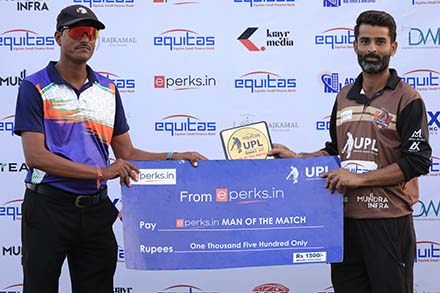 आयोजन सचिव अनिरुद्ध सांखला ने बताया कि इक्विटास बैंक के सहयोग से हुए आयोजन में दूसरे मैच में चेतक स्टालिन्स के अश्विन मेनारिया की घातक गेंदबाजी की बदौलत लेक टाइटंस को 79 रनों पर समेट दिया और 9 विकेट से जीत अपने नाम की। मैन ऑफ द मैच अश्विन मेनारिया रहे। तीसरे मैच में पिछोला पैंथर्स ने गणगौर वॉरियर्स को 6 विकेट से हराया। श्रेय रावल ने शानदार ऑलराउंड प्रदर्शन करते हुए 54 बनाया और 1 विकेट लिया। मैन ऑफ द मैच श्रेय रावल रहे। मुख्य अतिथि स्टेट पैनल अंपायर दिनेश ओबरवाल ने मैन ऑफ द मैच को सम्मानित किया।