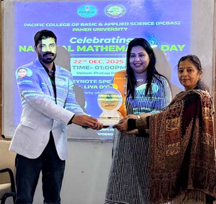 पाहेर विश्वविद्यालय के विज्ञान संकाय में राष्ट्रीय गणित दिवस बड़े उत्साह और अकादमिक गरिमा के साथ मनाया गया। यह आयोजन महान गणितज्ञ श्रीनिवास रामानुजन की जयंती पर आयोजित किया गया, जिसका उद्देश्य विद्यार्थियों में गणित के प्रति रुचि जागृत करना एवं इसके आधुनिक अनुप्रयोगों से उन्हें अवगत कराना था। कार्यक्रम की मुख्य वक्ता कुवैत स्थित अमेरिकन यूनिवर्सिटी ऑफ़ मिडिल ईस्ट की शिक्षाविद डॉ. लिया डी’कोस्टा रहीं। उन्होंने अपने संबोधन में गणित की वैश्विक प्रासंगिकता, शोध की नवीन दिशाओं तथा विज्ञान एवं प्रौद्योगिकी में गणित की केंद्रीय भूमिका पर विस्तार से प्रकाश डाला। उनके व्याख्यान से विद्यार्थियों और शोधार्थियों को अंतरराष्ट्रीय स्तर पर गणितीय अनुसंधान की समझ मिली।