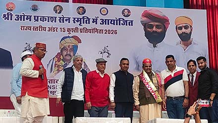 उस्ताद ओमप्रकाश सेन स्मृति में आयोजित अंडर 15 कुश्ती प्रतियोगिता मे राजस्थान कुश्ती संघ अध्यक्ष राजीव दत्ता द्वारा घोषणा की गई की उस्ताद ओमप्रकाश सेन स्मृति मे आयोजित अंडर 15 कुश्ती प्रतियोगिता में विजेता रहे पहलवानों को तमिलनाडु में हो रही नेशनल चैंपियनशिप में हवाई जहाज की यात्रा कर राजस्थान कुश्ती संघ की टीम राजस्थान का प्रतिनिधित्व करेंगी। यह प्रथम बार होगा की राजस्थान की कुश्ती टीम हवाई यात्रा कर नेशनल कुश्ती प्रतियोगिता के लिए पार्टिसिपेट करेगी। प्रारम्भ में जिला कुश्ती संघ के अध्यक्ष पारस सिंघवी ने अतिथियों का स्वागत करते हुए विश्वास व्यक्त किया कि इस राज्य स्तरीय स्पर्धा में विजेता बच्चें निश्चित रूप से नेशनल लेवल पर पदक जीत कर राज्य को गौरवान्वित करेंगे। प्रदेश के विभिन्न जिलो के 350 से अधिक खिलाड़ियों ने भाग ले कर अपना सर्वश्रेष्ठ दिया। प्रतियोगिता में 30 गोल्ड,30 सिल्वर व 60 ब्राॅन्ज मेडल वितरीत किये गये। प्रतियोगिता में गोल्ड मेडल विजेताओं को सरकार की ओर से 1 लाख,सिल्वर मेडल विजेताआंे को 50 हजार तथा ब्राॅन्ज मेडल विजेताओं को 25 हजार रूपयें दिये जायेंगे।