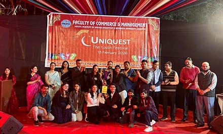 पेसिफिक विश्वविद्यालय के फैकल्टी ऑफ मैनेजमेन्ट द्वारा आयोजित ऑल इण्डिया मैनेजमेन्ट फेस्ट ‘यूनिक्वेस्ट-2026’ सफलतापूर्वक सम्पन्न हुआ। फेस्ट में भारत के अनेक महाविद्यालयों से आए 250 से अधिक छात्र-छात्राओं ने विभिन्न प्रतियोगिताओं में भाग लिया और पुरस्कार जीते।
